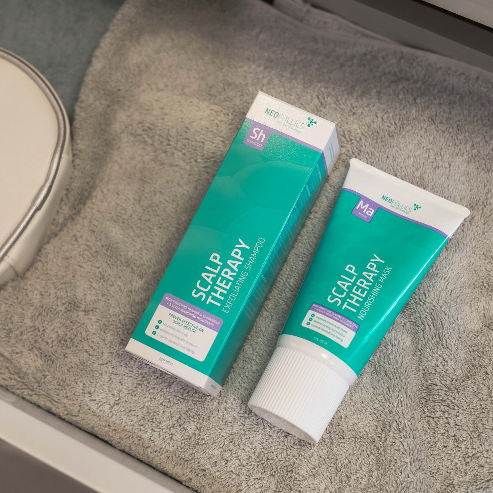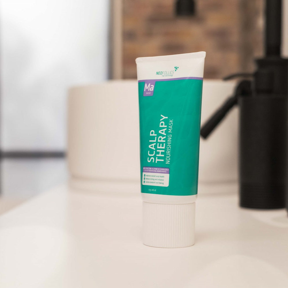 Neofollics Scalp Therapy Nourishing Mask is a dual-action treatment that removes flakes, relieves itching, and deeply nourishes the scalp. It improves scalp circulation  and supports fuller, stronger hair with every use.