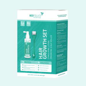 This comprehensive set includes the Hair Growth Stimulating Lotion with 7% Neoxyl and the Scalp Enhancing Roller with 0.30 mm stainless steel needles for enhanced absorption and scalp revitalisation.